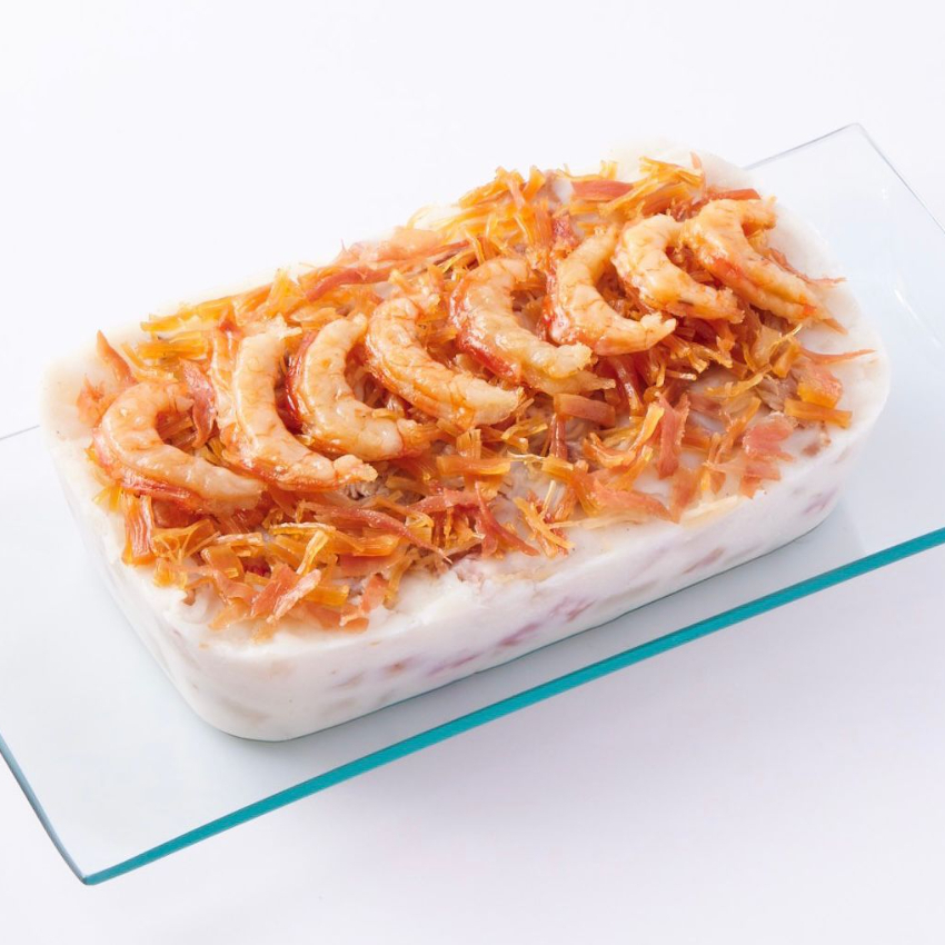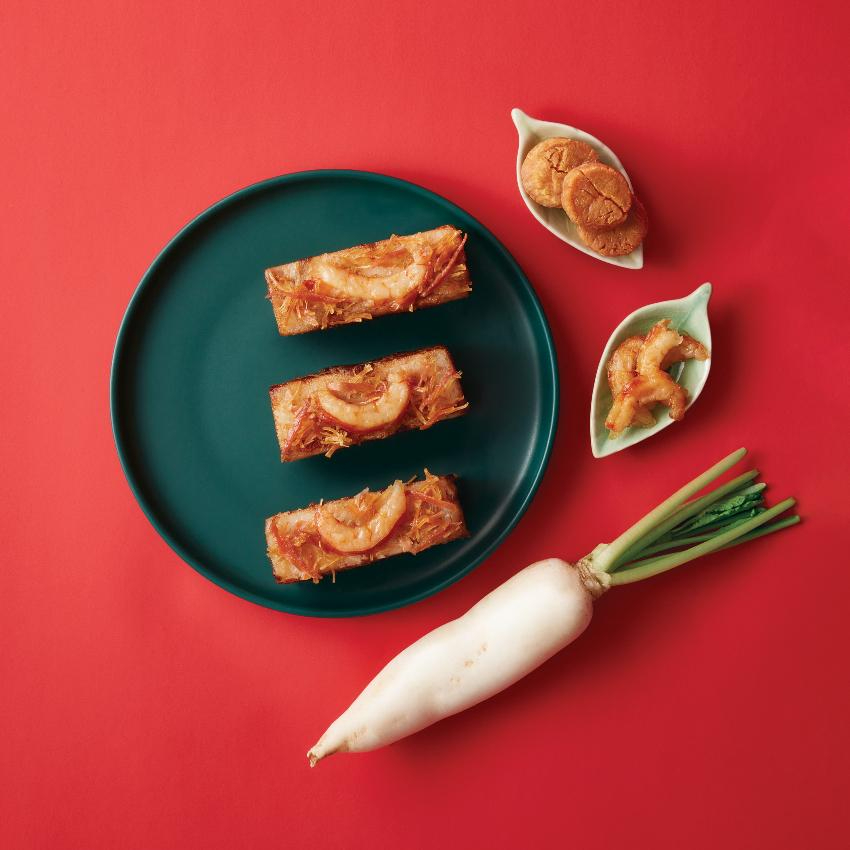 升級選用香濃蝦乾,配合啖啖爽甜的有機蘿蔔、加上頂級瑤柱及金華火腿,昇華滋味,一試難忘,為星級賀年糕品之選。